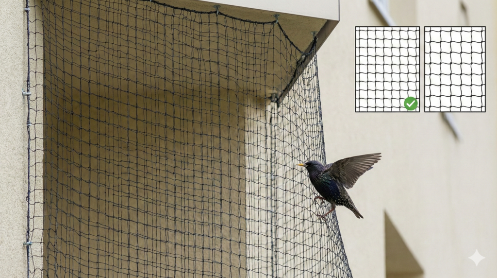 一般的には、ムクドリ対策なら細かめの網目が扱いやすい目安になります。