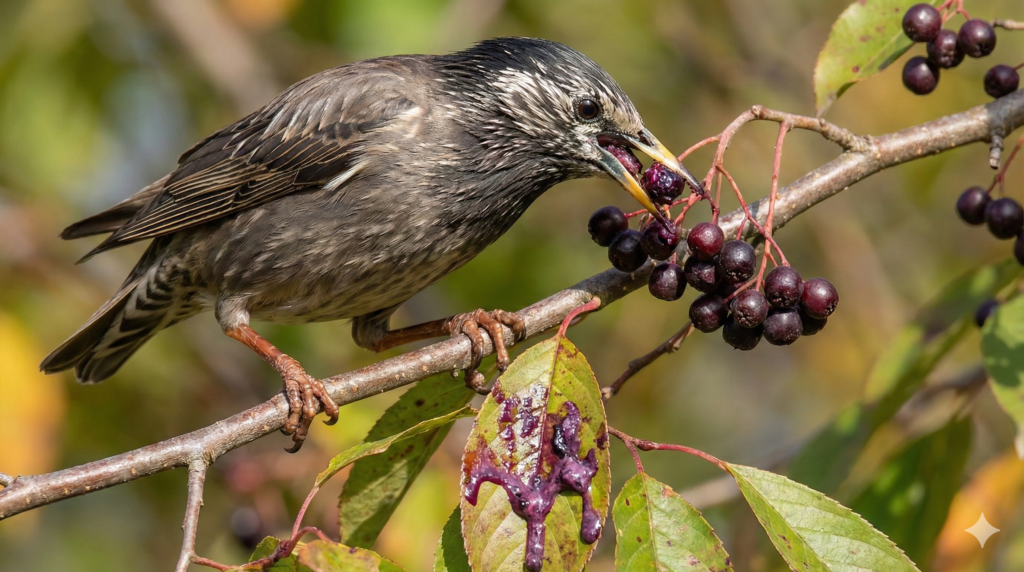 ヨウシュヤマゴボウ自体は毒性成分があると言われますが、ムクドリが食べること自体は珍しくありません。