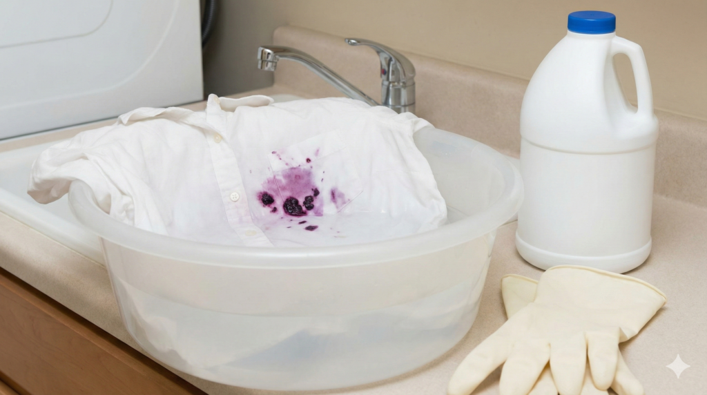 シミが残る場合は、素材表示を確認したうえで酸素系漂白剤などを検討します。