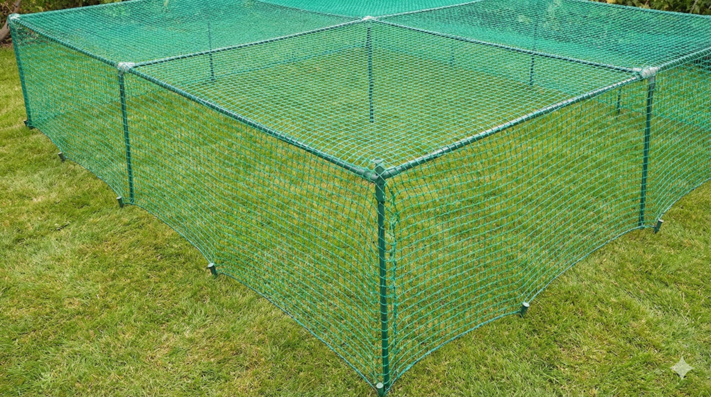 テグスを低い位置に張り、必要ならネットで部分防御します。