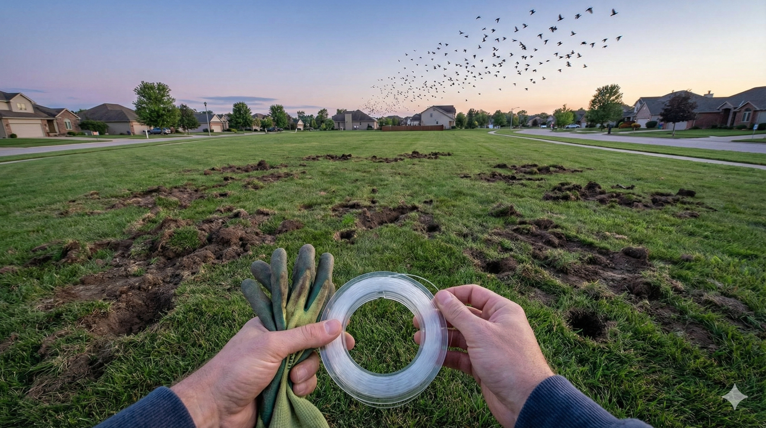 ムクドリの芝生被害は「追い払い」だけで押し切るより、餌(幼虫)を減らして魅力を下げ、同時に侵入コスト(テグス・ネット)を上げるほうが、再発しにくくなります。