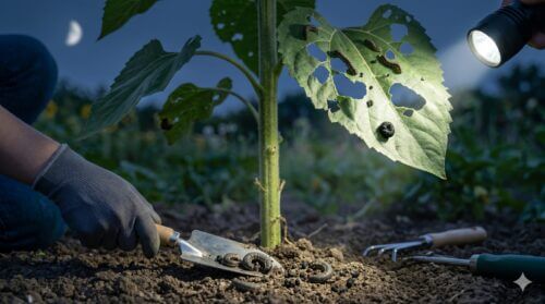 ヨトウムシが夜間に葉を食べる被害への対策