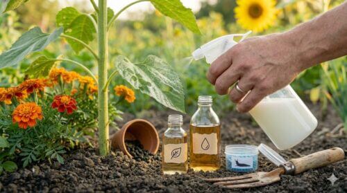 牛乳と水を1:1の割合で混ぜ、霧吹きでアブラムシがびっしりついた箇所に直接スプレーします。牛乳が乾いて固まるときに、アブラムシの気門(呼吸用の穴)を塞いで窒息させる仕組みです。非常に効果的ですが、ポイントは「しっかり乾かすこと」と「後で洗い流すこと」です。そのままにしておくと腐敗して悪臭を放ったり、カビの原因になったりするため、効果を確認した数時間後には水で綺麗に洗い流してあげましょう。