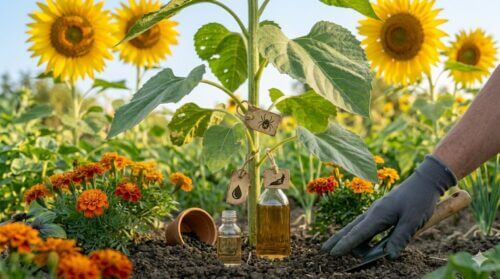 ひまわり自身も、他の野菜を守るための「バンカープランツ(障壁作物)」として役立つことがあります。例えば、テントウムシなどの天敵を呼び寄せることで、周囲の作物の被害を減らす役割を担ってくれるのです。ひまわりを庭の中心に据えることは、実は周囲の植物の安全を守ることにも繋がっています。