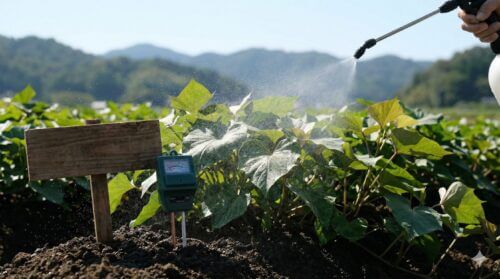 とくにサツマイモは、葉の量が多く、全面散布すると作業量も増えます。準備、散布、後処理まで含めると、思った以上に手間がかかるものです。その手間をかけるなら、まず株数を減らしてでも観察精度を上げたほうが、結果がよいことも少なくありません。民間的な方法を使うにしても、基本管理を飛ばさないことが大前提です。