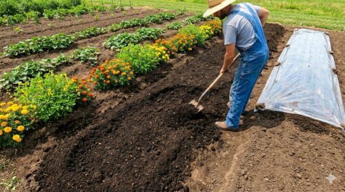 コガネムシ成虫は、土に入りやすく、産卵しやすく、幼虫が育ちやすい環境を好みます。そこで私が意識しているのは、まず完熟堆肥を早めに入れて土になじませることです。植え付け直前に有機物の匂いが強い状態をつくらないだけでも、誘引要素を減らしやすくなります。