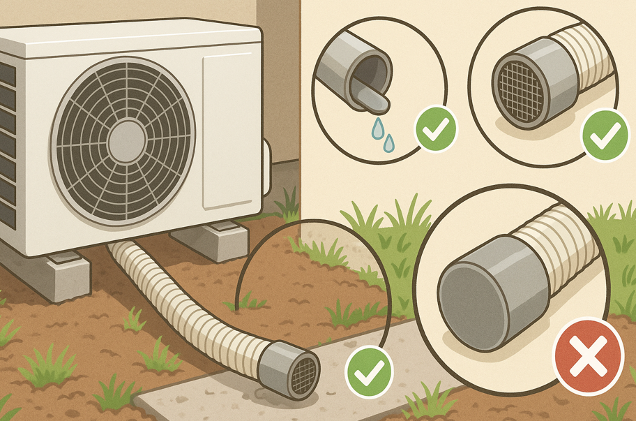 完全密閉は排水不良や室内機の漏水につながるため避け、通水性と防虫性のバランスが取れた製品が適しています。