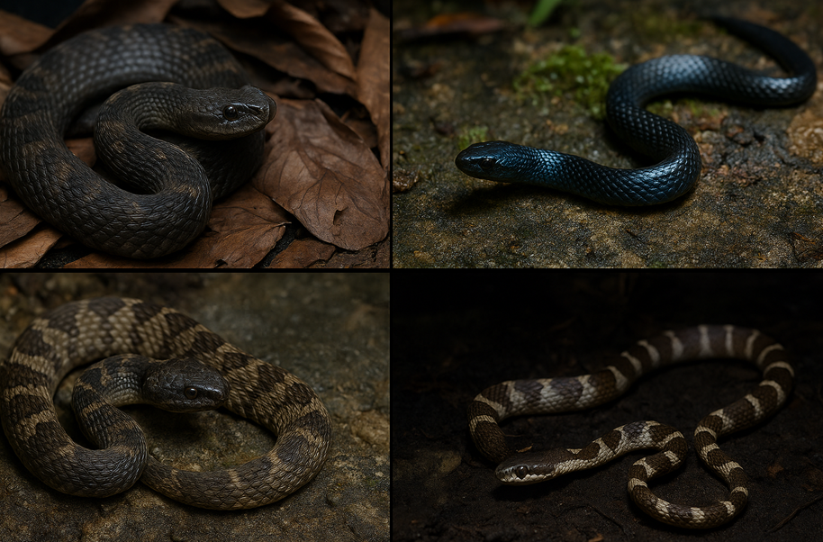 • 黒い個体には無毒種と毒蛇の両方が含まれうる