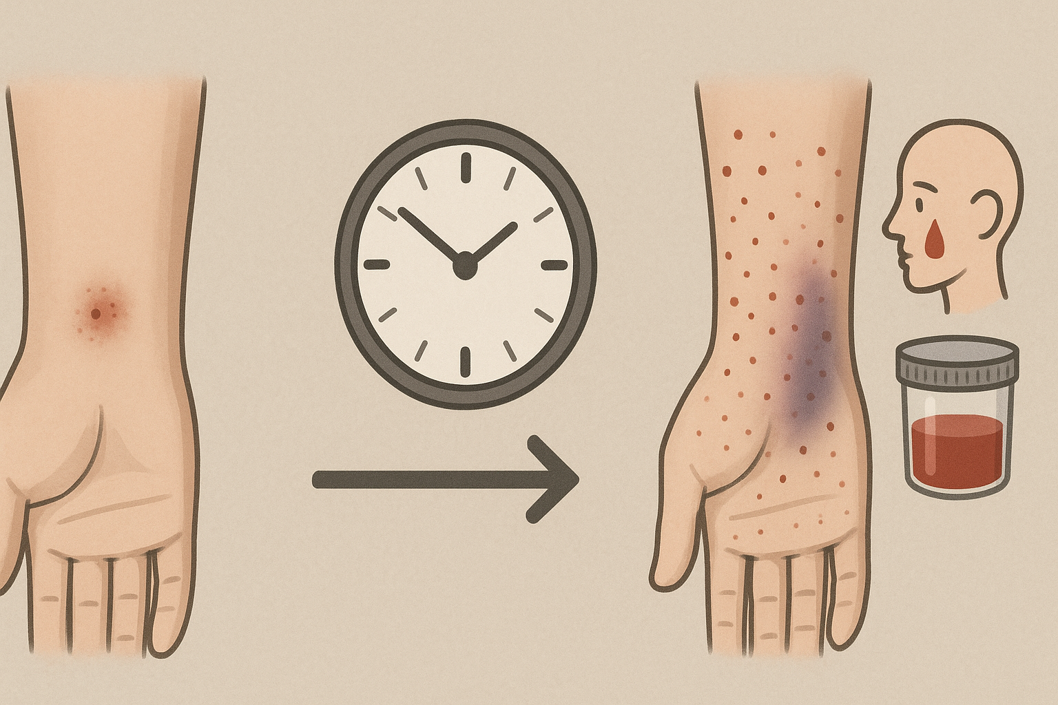 痛みや腫れが少ないと「大したことない」と自己判断しがちですが、数時間〜1日で全身の出血傾向が現れるケースが問題です。