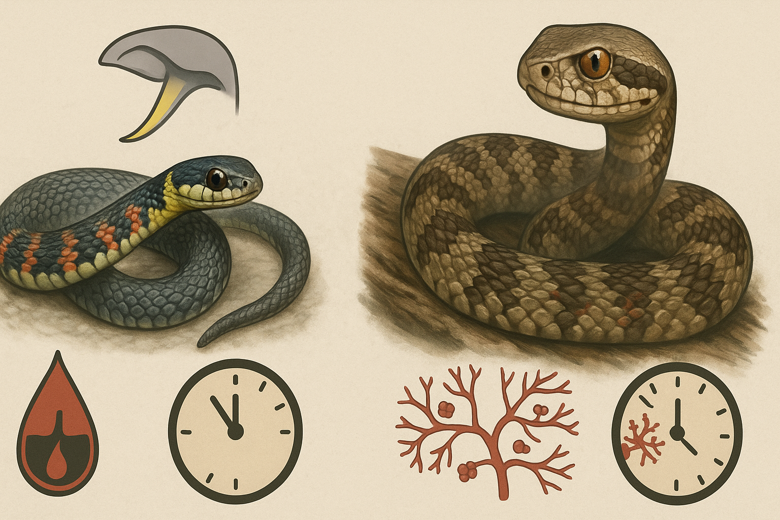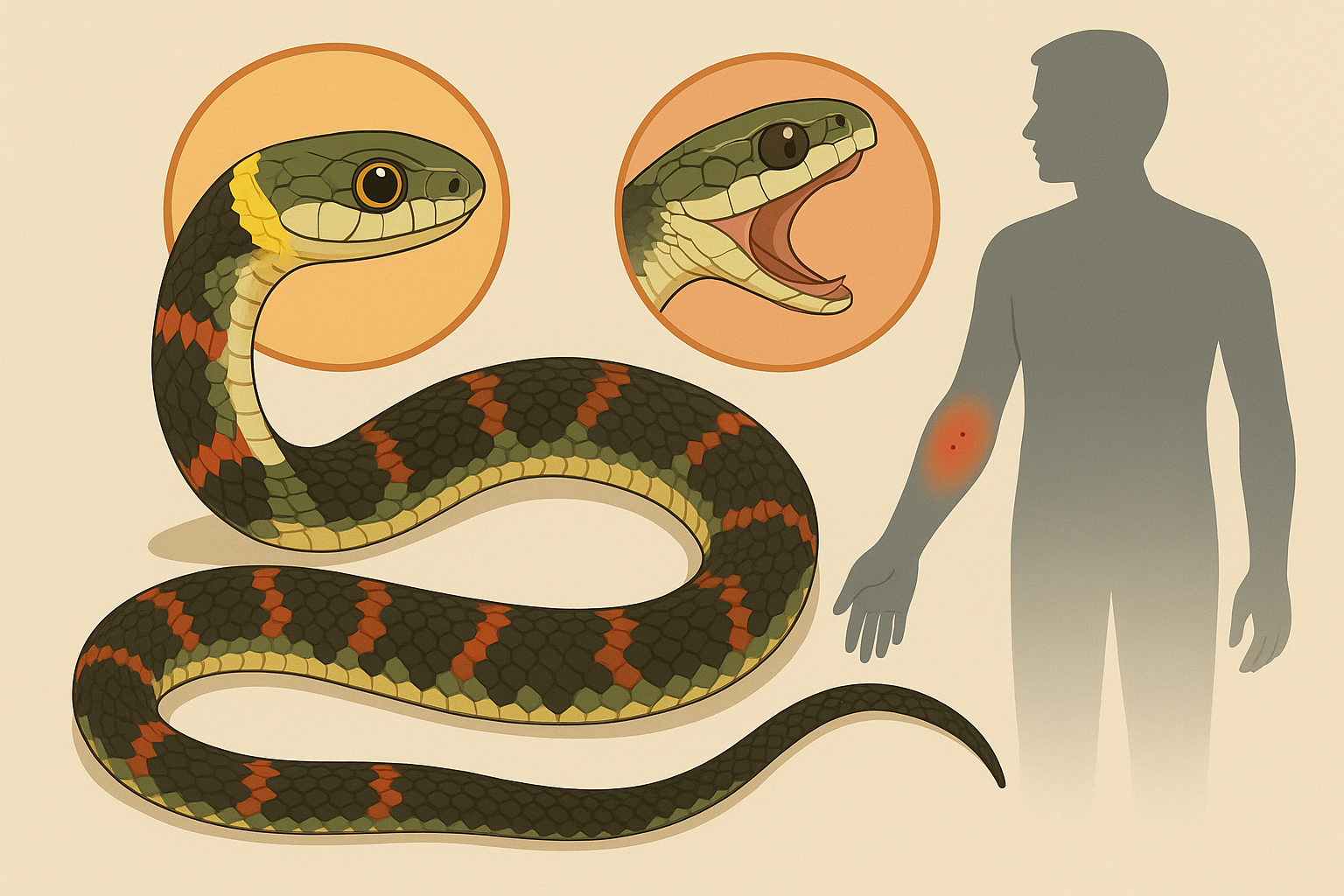 ここでは、ヤマカガシ幼体が持つ毒の種類、作用、リスクを順序立てて解説します。頸腺毒と咬毒という二系統の毒を区別し、人に及ぶ影響を具体的に把握しましょう。幼体の時点で既に成立している化学防御、咬傷時に遅れて現れる全身症状、家庭でできる一次対応と医療で必要な検査のポイントまで、理屈と実務の両面から整理します。