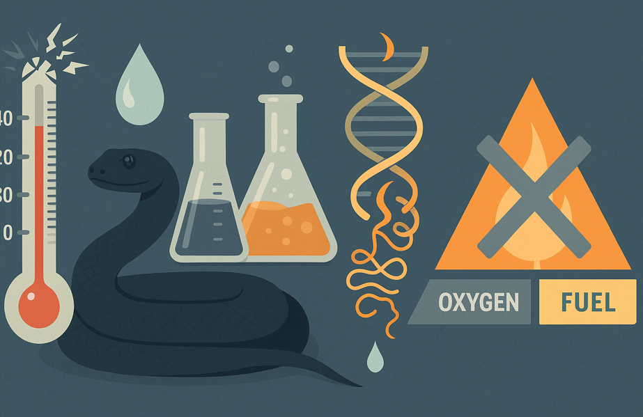 さらに、酸化反応としての燃焼には可燃物、酸素、着火源の三要素が必要ですが、ヘビの体内に着火源を作り出す化学反応は知られていません。