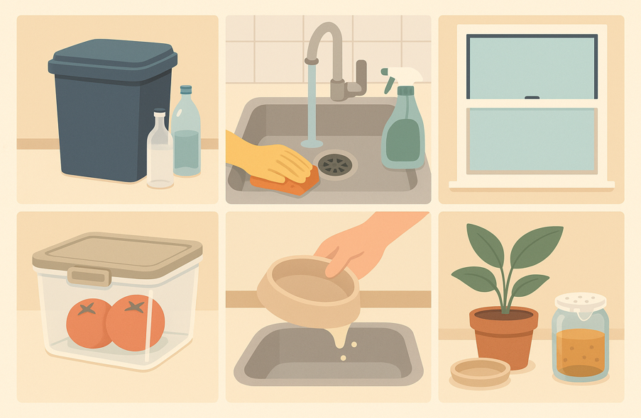 自治体やメーカーの解説では、生ごみをフタ付き容器で密閉する、果物や発酵食品を出しっぱなしにしない、排水口のぬめりを定期的に除去するなどの基本が有効とされています。