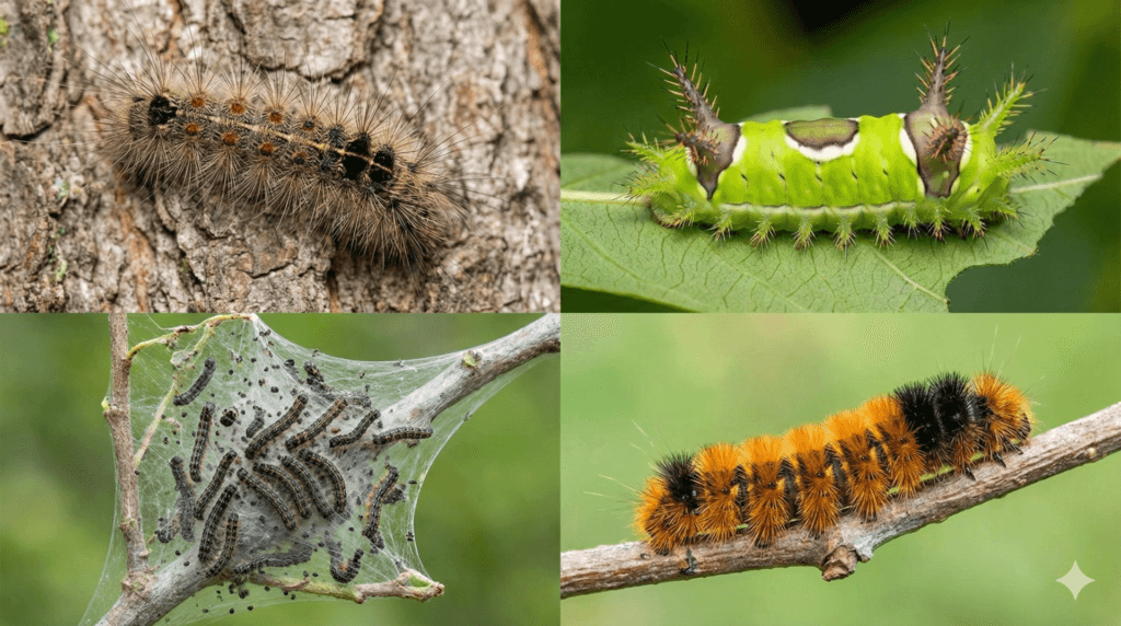 だから「毛虫の種類」は想像以上に幅広いです。代表格としては、毒針毛で皮膚炎を起こしやすいチャドクガ、触ると電気が走るように痛いイラガ、無毒でも大量発生で不快なアメリカシロヒトリなどが挙げられます。