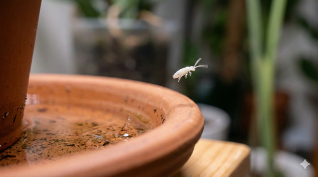 水やりの直後に土表面に点が出たり、受け皿に溜まった水の近くで跳ねたりするなら、ほぼ答えが出ています。