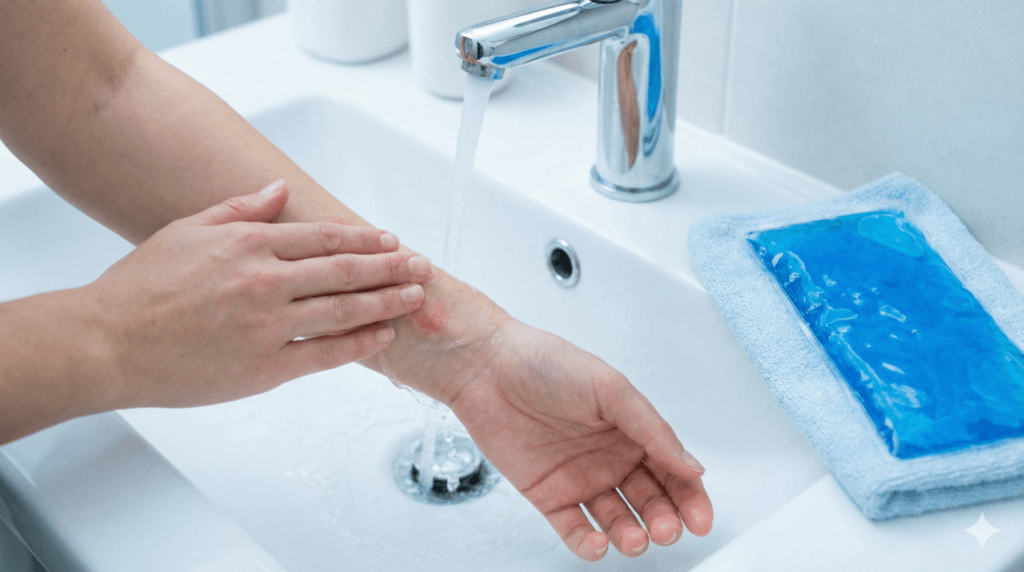痛みや熱感があるなら、保冷剤などで短時間ずつ冷やします。冷却はかゆみや腫れの軽減にもつながりやすいです。冷やしすぎは凍傷のリスクがあるので、タオル越しに当て、数分冷やして休む、を繰り返すと安全です。