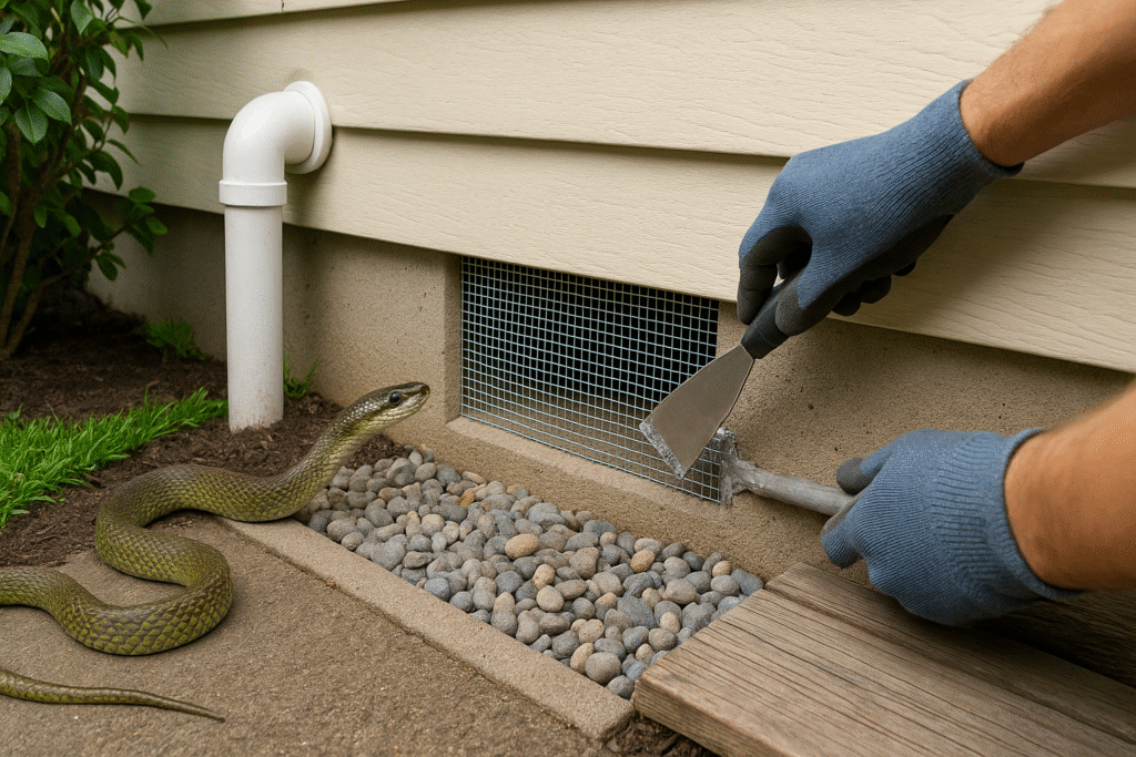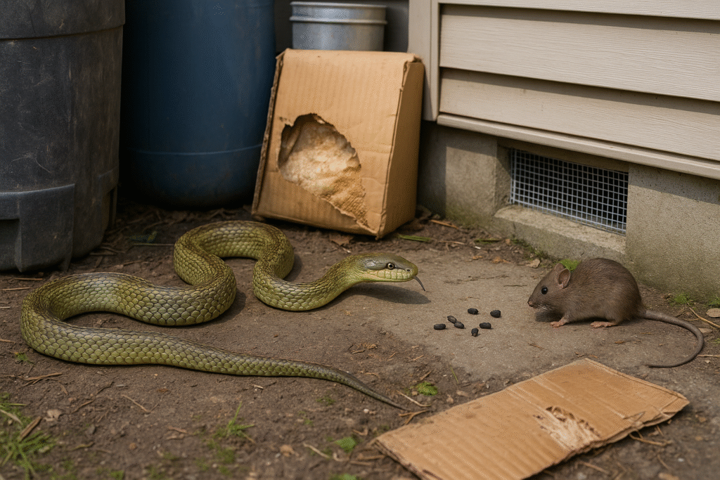 侵入経路の封鎖、餌場の除去、営巣材料(ダンボール・布)の管理、ゴミの保管、屋根裏・床下の点検を一体で進めれば、アオダイショウの来訪動機を断てます。