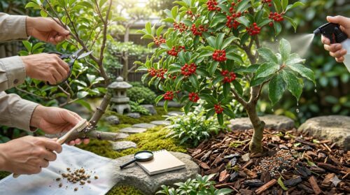 • 10月〜11月(結実期):赤い実を楽しむ時期。落ち葉や病葉をこまめに掃除し、翌年の感染源を断つ。