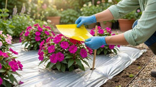 多くのアブラムシやコナジラミは、太陽光が地面で反射してキラキラと光るのを嫌います。そのため、株元にシルバーマルチ(銀色のシート)を敷いたり、プランターの縁にアルミホイルを貼ったりするだけで、飛来率を大幅に下げることができます。特にサンパチェンスの苗がまだ小さく、害虫の影響を受けやすい初期段階で導入すると、その後の生育が格段に安定します。