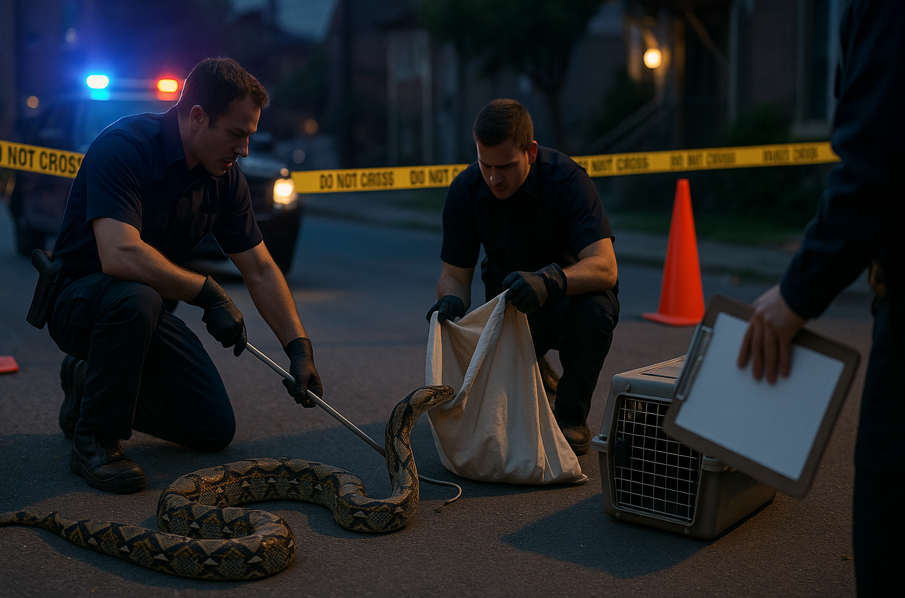 国内でニシキヘビ類とみられる個体を目撃した場合は、近づかず、走行車両や歩行者の安全を確保しつつ、警察や自治体の担当窓口へ通報するのが適切です。
