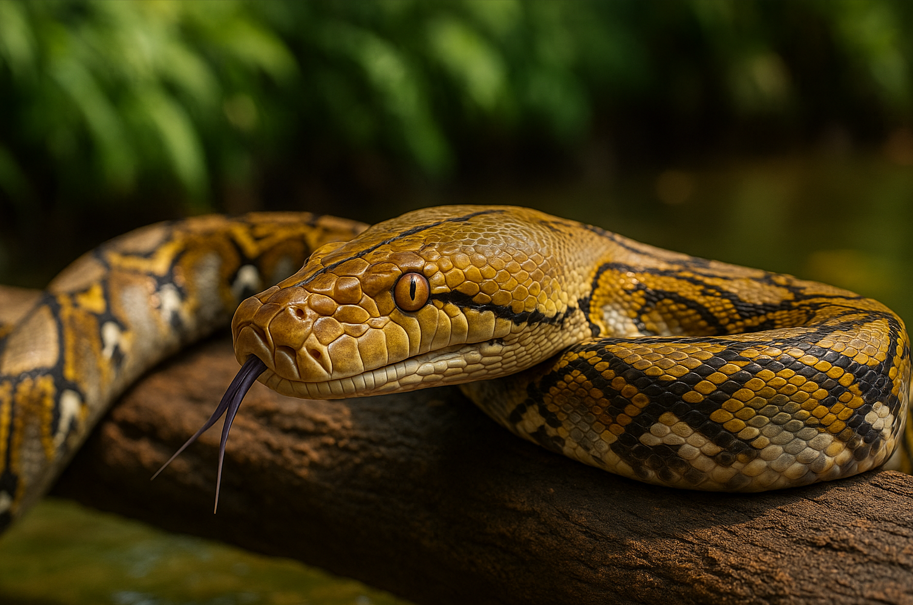 アミメニシキヘビは世界最長級のヘビとされ、個体によっては体長7メートル級に達すると報告されています。