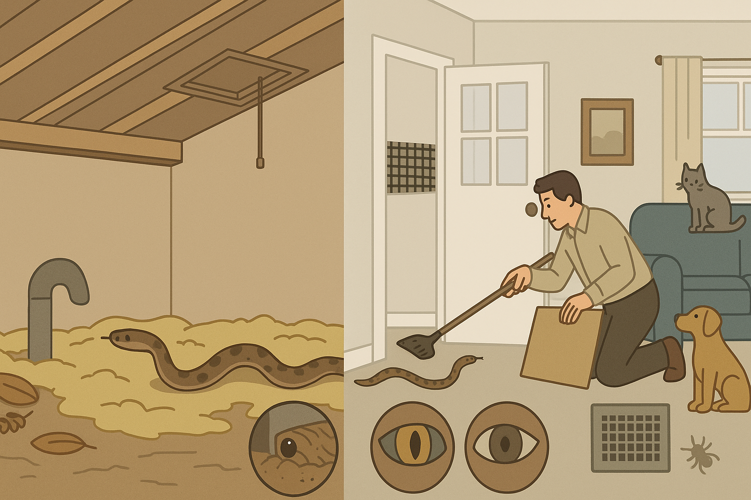 家屋でアオダイショウと遭遇する背景の多くは、餌資源(ネズミ・小鳥・卵)と隠れ場所のセットにあります。