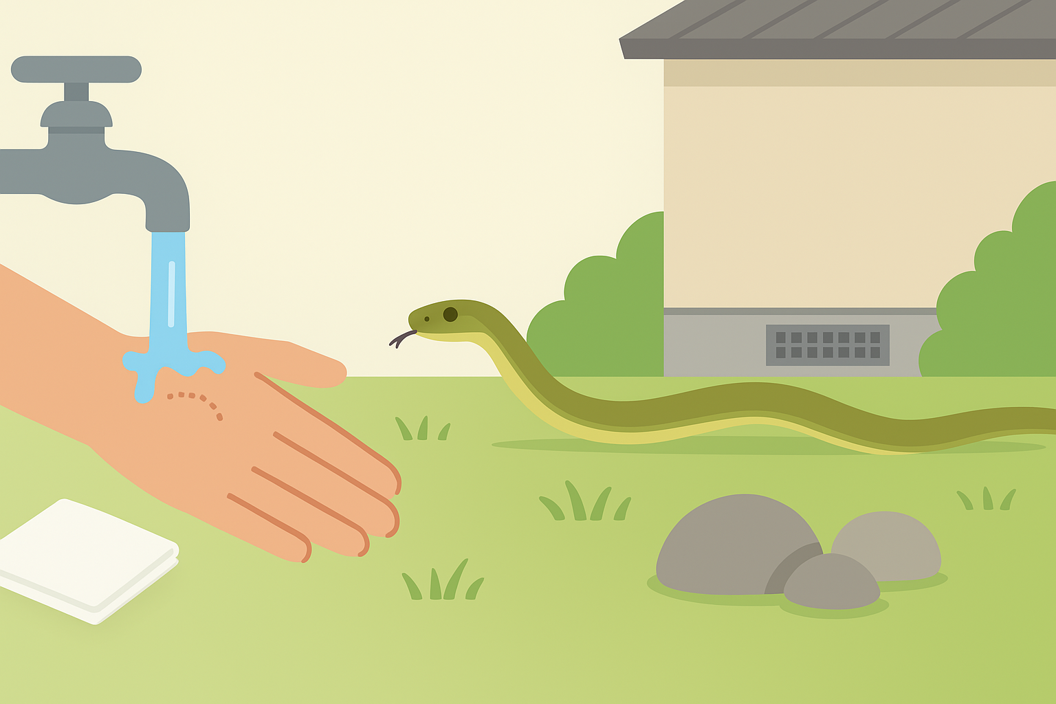 1安全確保と安静ヘビから静かに距離を取り、無用な接触を避ける