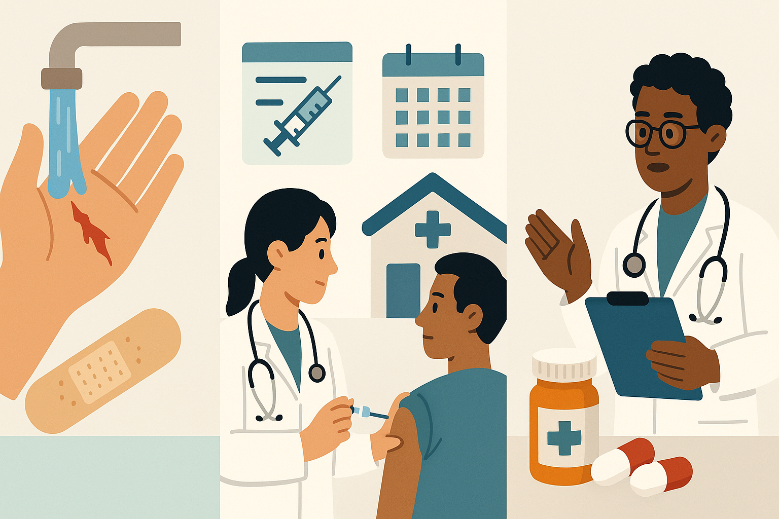 予防接種歴が不明・古い場合は、医療機関でトキソイドの追加接種や免疫グロブリンの適応を評価します。