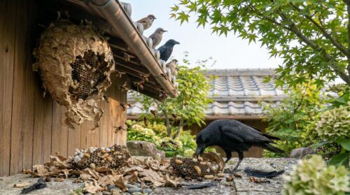 蜂の巣を鳥がつつく場面は、自然界の中では食物連鎖の一部です。しかし、それが住宅の軒下やベランダ、庭木で起きると、人間にとっては危険な生活トラブルになります。鳥が蜂を食べてくれるならありがたいと感じるかもしれませんが、鳥は巣を安全に撤去してくれる存在ではありません。巣の一部だけが壊れ、残った蜂が興奮し、周囲に散ることがあるため、むしろ注意が必要です。
