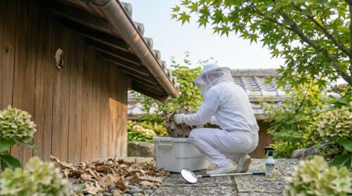 やむを得ず小さな巣を処理する場合でも、防護服、手袋、顔を覆うネット、逃げ道の確保が必要です。作業後は自治体のルールに沿って処分します。安全に不安がある時点で、自力処理ではなく相談に切り替える判断が大切です。