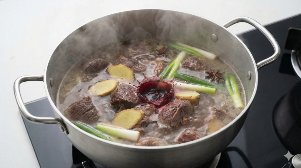 家庭でできる臭み対策としては、下茹ででアクを丁寧に取ること、香味野菜と一緒に煮込むこと、味噌や赤ワインなど香りの強い調味料と組み合わせることが有効です。
