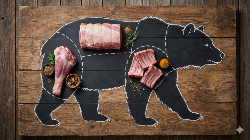 まずはヒグマの味そのものに焦点を当てて、熊肉全体との違い、臭いの正体、ツキノワグマとの味の差、季節による味の変化、部位別の特徴を整理していきます。ここを押さえておくと、実際にヒグマ肉を前にしたとき、どの部位をどう調理して楽しむべきかが見えてきます。単なる珍味としてではなく、「どのようにすれば一番おいしく、安全に味わえるのか」という視点で読んでいただけると、判断の軸がしっかりしてきます。