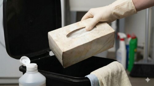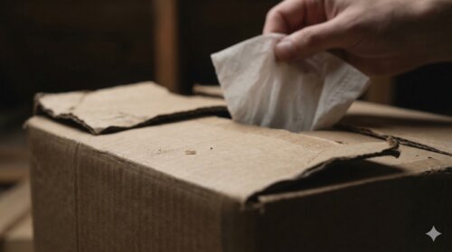 家庭でできる安全な処分は、基本的に自治体ルールに従った可燃ごみです。虫が付いていた場合は、袋を二重にする、口をしっかり結ぶ、周辺も拭き掃除する、までセットで考えてください。虫やカビが絡んでいるケースでは、捨てる行為そのものより、捨てた後の周辺処理が大事です。ティッシュ箱が置かれていた棚、下に敷いていた紙、近くの段ボールや紙袋をそのままにしておくと、見えない残りが再発の火種になります。