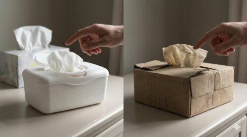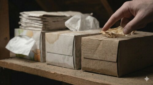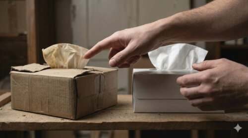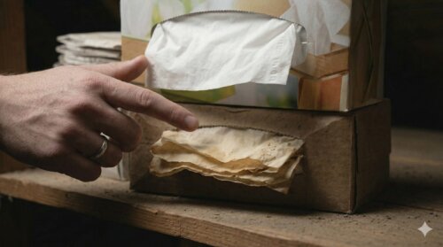 とくに洗面所や寝室は、湿度変動と繊維くずが多く、紙にとっては決して優しい環境ではありません。開封後に半年、1年と放置されていたものを見つけたら、まずは見た目、におい、触感をチェックしてください。ゴワつき、しっとり感、におい移りがあるなら、顔や肌に使うのは避けるのが無難です。取り出し口の周辺だけが汚れたり変色したりしている場合も、その部分だけ切り捨てればよいという考え方はおすすめしません。箱内部まで空気の出入りがある以上、表面だけの問題とは限らないからです。
