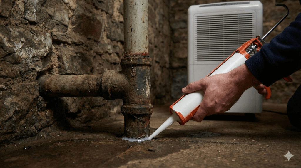 - 排水口・床の隙間・配管まわりをコーキング等で塞ぐ