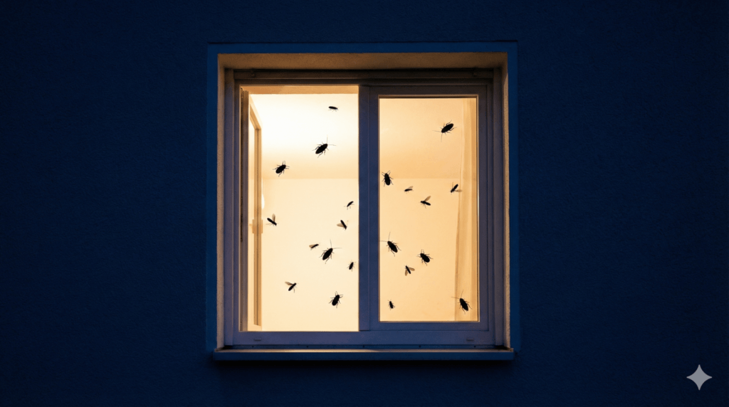 ドイツ周辺(中央ヨーロッパ)では、夏場に窓を開ける文化もあり、屋外性の小型種がふわっと入ってくることがあります。網戸が一般的でない住居もあるため、「窓の灯りに誘われる→偶発侵入」が起きやすいのが実情です。
