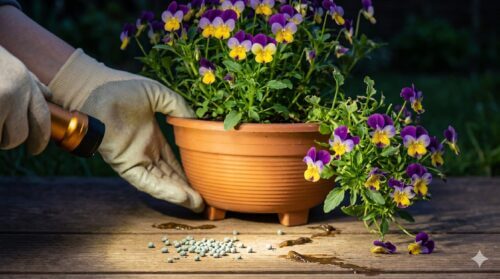 肥料の三要素である窒素(N)・リン酸(P)・カリウム(K)のうち、窒素は葉を大きく育てますが、多すぎると細胞壁が薄くなり、アブラムシの口針が刺さりやすい「水っぽい株」になります。ビオラを冬から春まで健康に保つためには、根の発育を促す「リン酸」と、細胞を強化する「カリウム」をしっかりと含んだ肥料を意識して選びましょう。