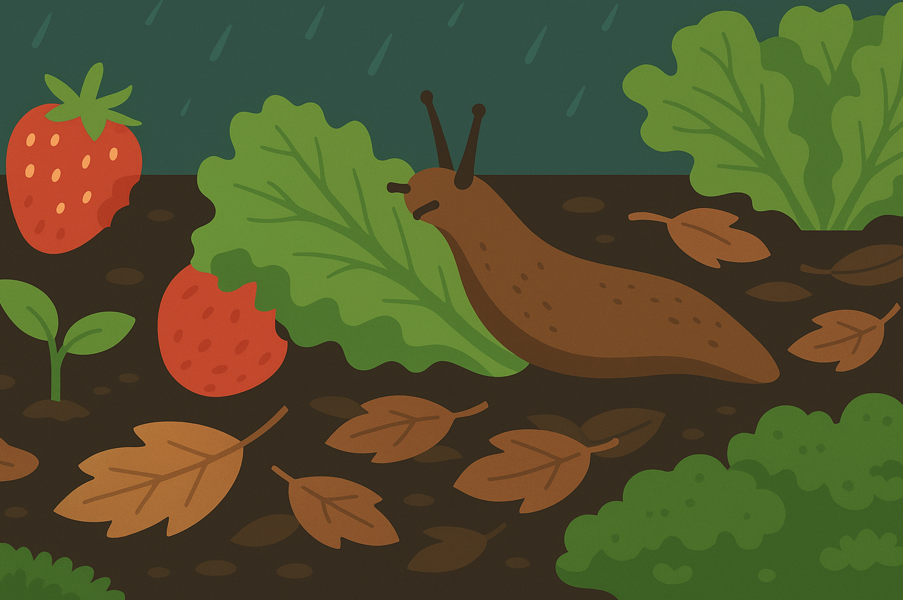 ナメクジは草食性が中心で、植物の葉・果実・若芽・苔・落ち葉などを好むとされ、家庭菜園ではレタスやイチゴ、柔らかい新芽の食害が知られています。