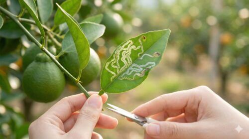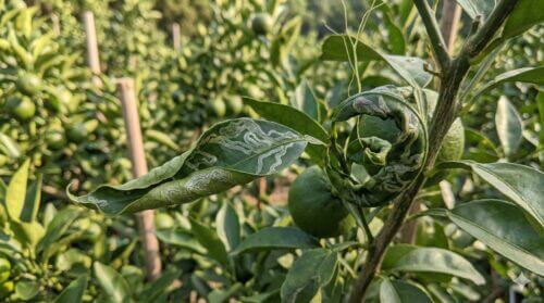 ミカンハモグリガの被害で最も恐ろしいのは、実は食害そのものよりも、その傷跡から感染する「かいよう病」です。この病気は風雨によって運ばれる細菌によって引き起こされ、葉や果実にかさぶたのような病斑を作ります。ミカンハモグリガが葉を這い回った跡は、細菌にとって絶好の侵入口となります。一度かいよう病が蔓延すると、防除が非常に困難になるため、まずはその引き金となるミカンハモグリガを徹底的に抑え込むことが、デコポン栽培における定石といえます。