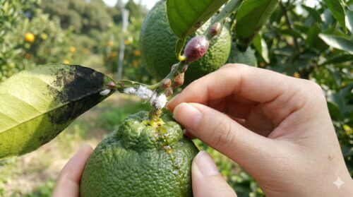 さらに、果実にすす病が出ると見た目が悪く、洗ってもなかなか落ちないため非常に厄介です。すす病を直すには、その根本原因である「白い虫(カイガラムシやコナジラミ)」を駆除する以外に道はありません。