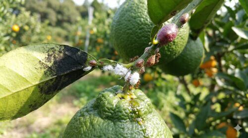 | コナカイガラムシ | 白い粉状、綿のようなワックスをまとう | 葉の付け根、果実のヘタ周辺 |