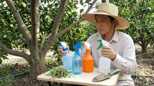 また、散布の際は「葉の裏」「枝の分岐点」「密集した葉の内部」など、薬液が届きにくい場所にまで丁寧にかけることが重要です。散布機のノズルを下から上へ向けるようにして、樹全体を洗うイメージで作業しましょう。