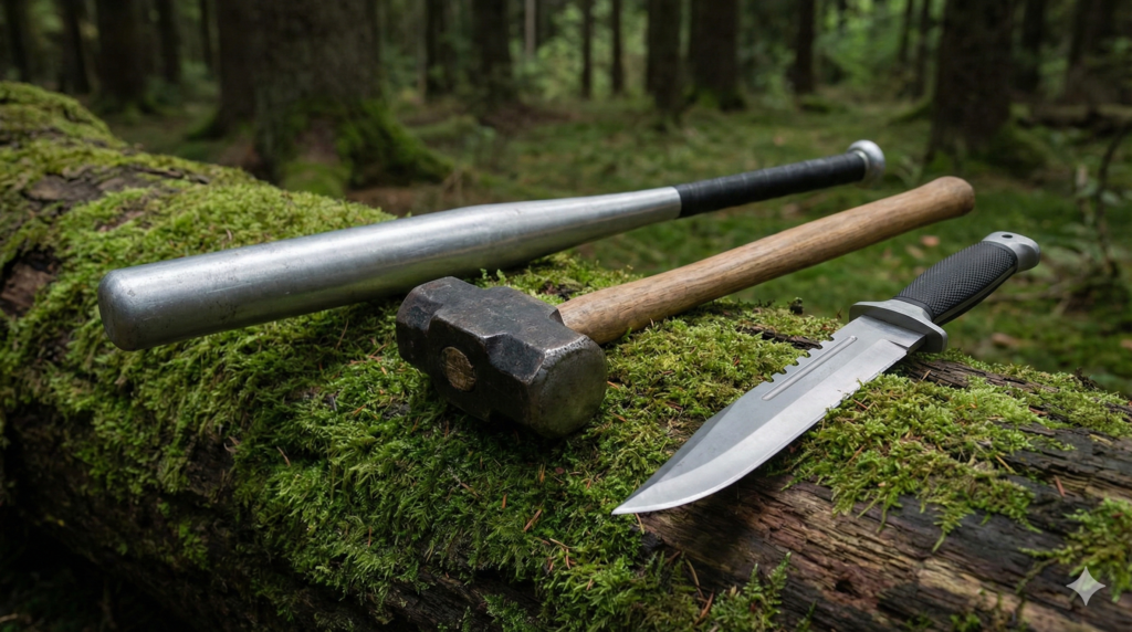 ハンマーとの比較の結論としては、金属バットよりも破壊力はあるものの、その分リスクと扱いの難しさも跳ね上がるため、「より安全な選択肢」にはなり得ない、ということになります。