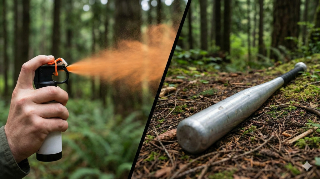 護身用武器として考えるべき優先順位は、「距離を稼げるもの」→「クマの接近自体を減らすもの」→「バリケードや退避場所」と続き、金属バットやハンマーはそのさらに後ろに追いやられるべき存在です。