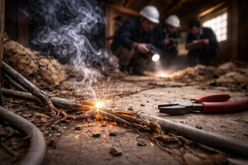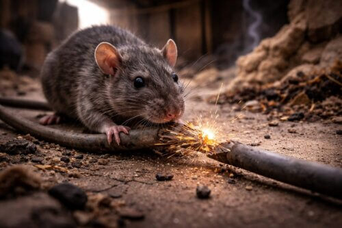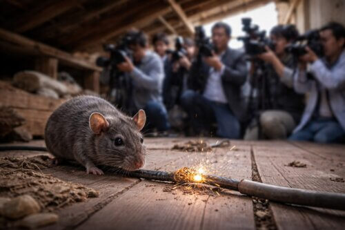 害獣対策の現場で見るネズミ被害には、被覆に細かな歯形が残っていたり、一部が不規則に削られていたり、周囲にフンや巣材が見つかったりするなど、ある程度の特徴があります。もちろん火災後には痕跡が失われやすいのですが、それでもネズミ説を強く主張するなら、ほかの要因より優先して考えるだけの材料が必要です。私はこのテーマでは、まず電気火災としての構造を理解し、その上でネズミが入り込む余地がどの程度あるかを検討する順番が妥当だと考えています。