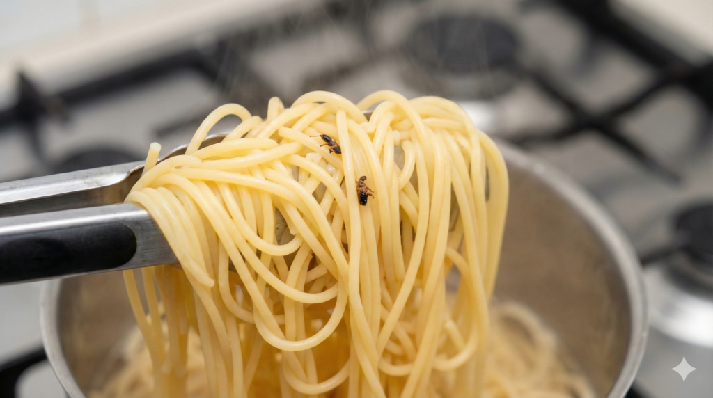 しかも、未開封のパスタなのに虫が湧くこともあります。パスタの虫はどこから入るのか、虫ごと食べたら大丈夫なのか、茹でたら安全なのか、乾燥パスタの保存方法をどう変えれば再発しないのか——このあたりが一気に気になりますよね。