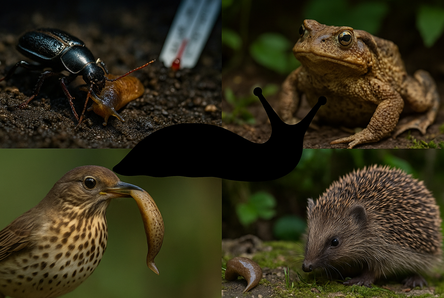 野外では、さまざまな捕食者がナメクジの個体数を抑える役割を果たします。