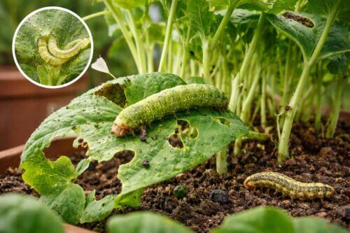朝起きたら豆苗が茎だけになっていた、あるいは葉に無数の大きな穴が空いているといった被害は、食害性害虫によるものです。特に警戒すべきはヨトウムシ(ハスモンヨトウ)です。彼らは夜行性のため、昼間は土の中や豆の隙間に隠れており、私たちが寝静まった夜間に猛烈な勢いで葉を食べ進めます。