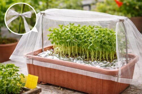 害虫対策において最も効果的で、かつ最も安全な方法は「物理的に遮断すること」です。特にベランダや窓際で豆苗を育てている場合、蛾やアブラムシの飛来を許さないことが重要になります。そこで活用したいのが防虫ネットです。豆苗のような小型の植物であれば、100円ショップで手に入る洗濯ネット(網目の細かいタイプ)や、自立するメッシュ状のカゴを被せるだけで、外部からの侵入をほぼ100%防ぐことができます。ネットの目合いは、小さなコナジラミやアブラムシも防げるよう「0.4mm以下」のものを選ぶのがプロの推奨です。