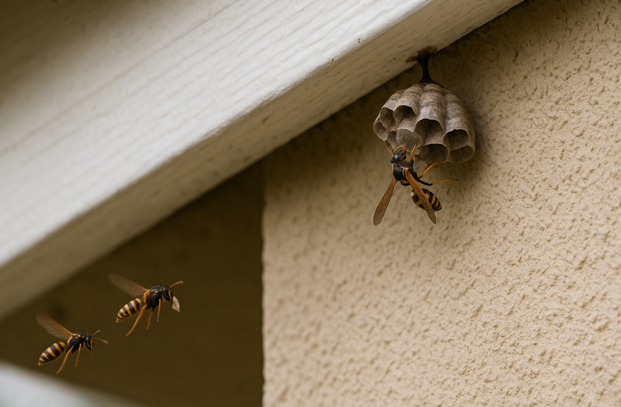 - アシナガバチは軒裏や植木で初期巣を作りやすく早期対応が有効