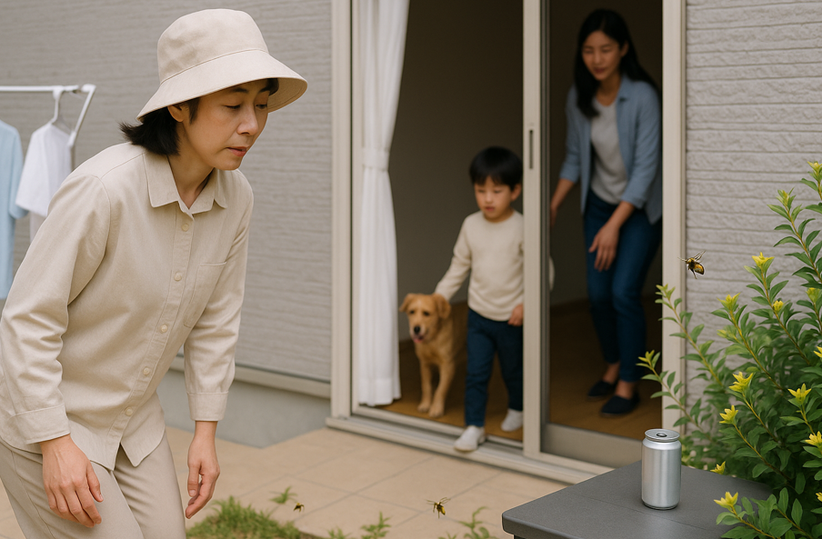 濃色や黒に蜂が反応しやすいという指摘があるため、屋外作業では明るい色の服装を選び、香水や甘い香りの整髪料、甘味飲料の開け放しなど誘引要因を控えます。